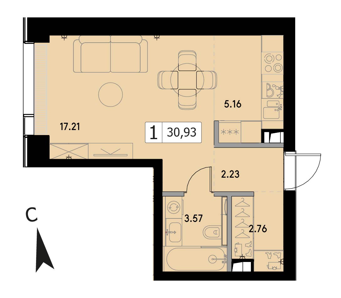 В продаже 1-комнатная квартира без отделки на 3 этаже, Корпус 1.5.