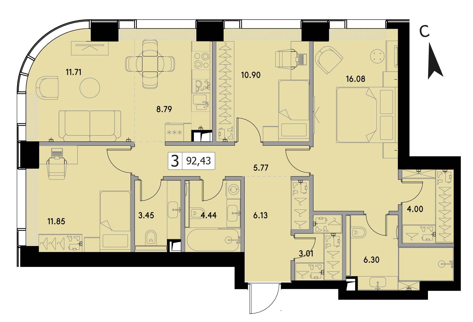 Представляем вашему вниманию 3-комнатная квартира без отделки на 15 этаже, Корпус 1.5.