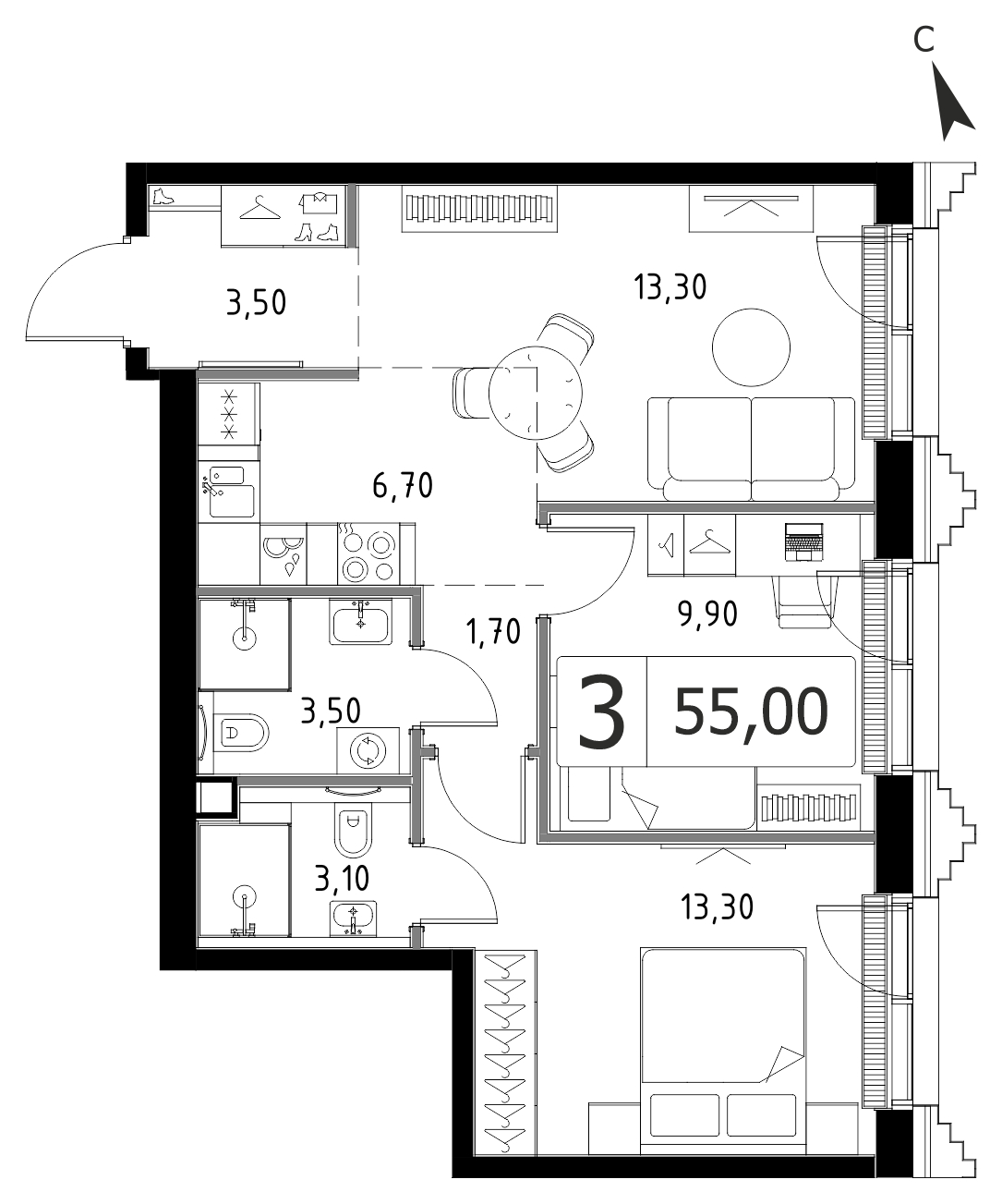 Представляем вашему вниманию 3-комнатная квартира без отделки на 7 этаже, Корпус 2. «СЭТ» (SET) — жилой квартал в престижном Западном округе Москвы (ЗАО). В него входят три жилых башни высотой 18, 45 и 59 этажей. Все корпуса объединены общим трехэтажным стилобатом (цокольными этажами), где сосредоточена внутренняя инфраструктура. Квартал возводится девелопером MR совместно со знаменитым архитектурным бюро СПИЧ. Завершение строительства запланировано на III квартал 2028 года.
