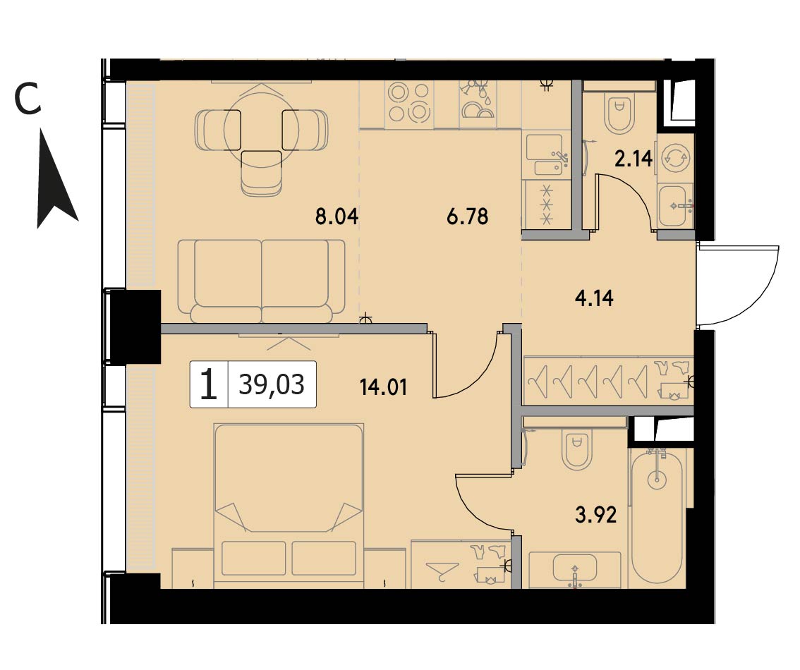 В продаже 1-комнатная квартира без отделки на 3 этаже, Корпус 1.2.