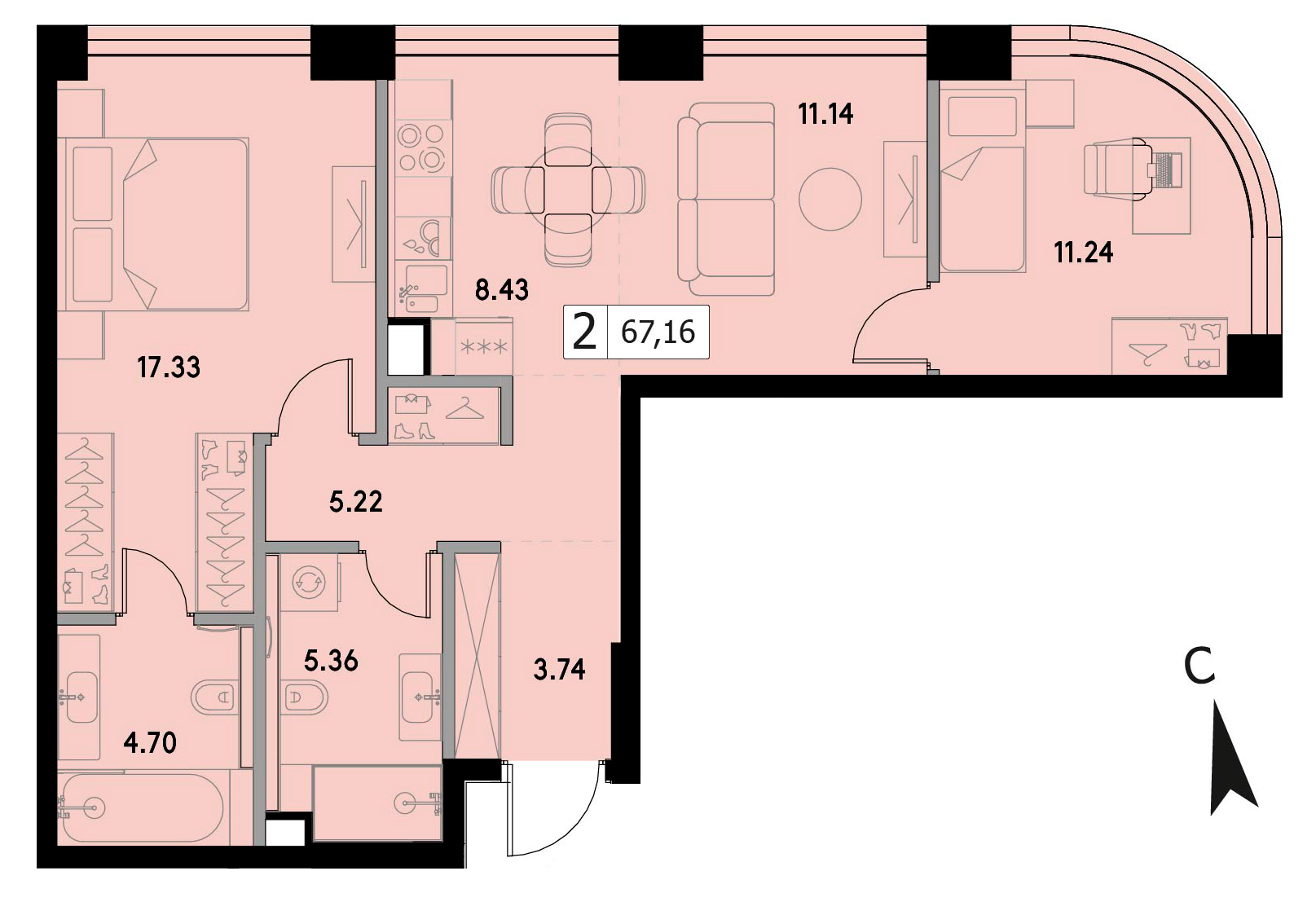 В продаже 2-комнатная квартира без отделки на 41 этаже, Корпус 1.3.