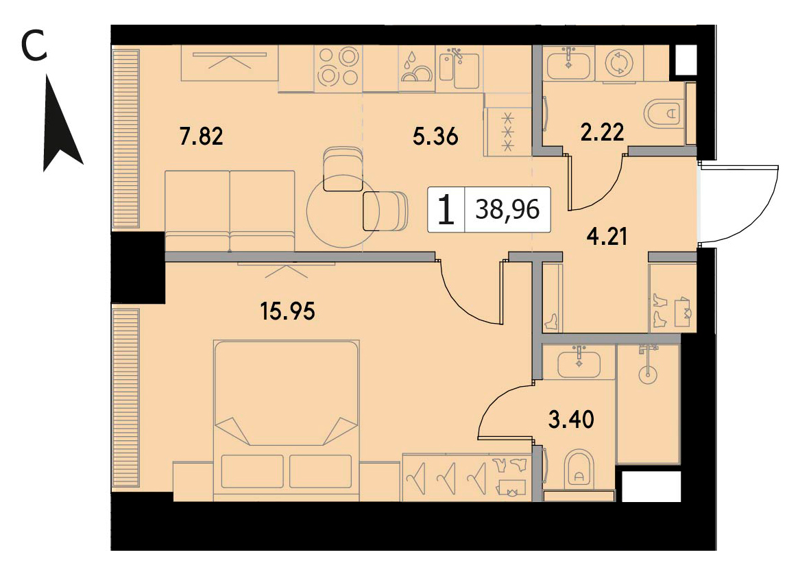 В продаже 1-комнатная квартира без отделки на 29 этаже, Корпус 1.3.