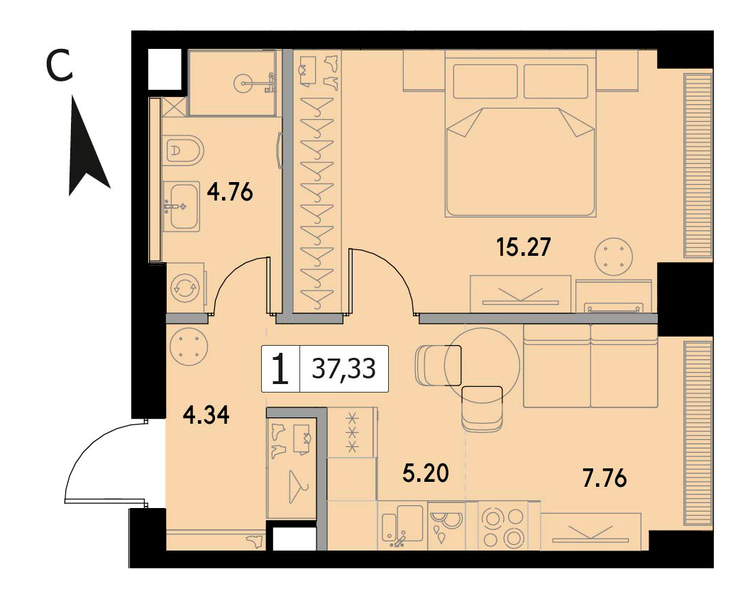 В продаже 1-комнатная квартира без отделки на 8 этаже, Корпус 1.3.