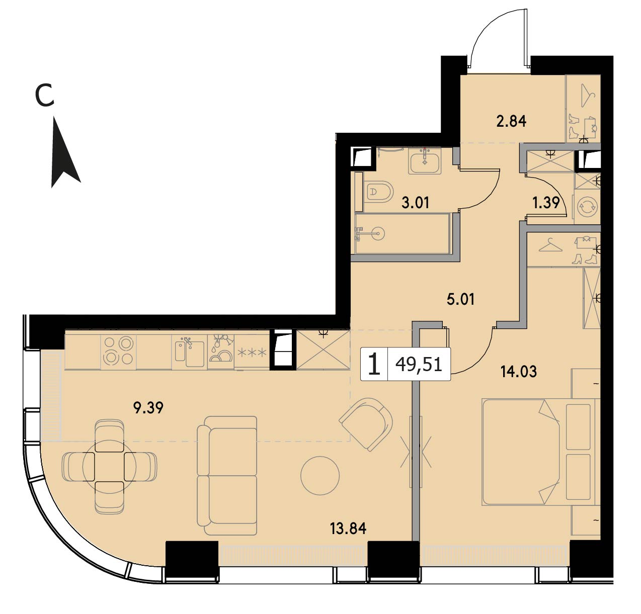 В продаже 1-комнатная квартира без отделки на 24 этаже, Корпус 1.5.