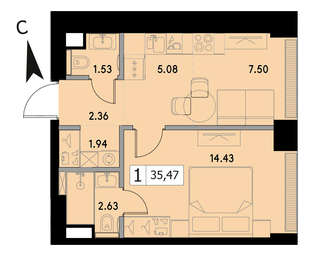 В продаже 1-комнатная квартира без отделки на 3 этаже, Корпус 1. МИRА (МИРА) — статусный проект рядом с ВДНХ в Москве. Премиальный квартал станет островом спокойствия и уединенности среди активного ритма жизни столицы.