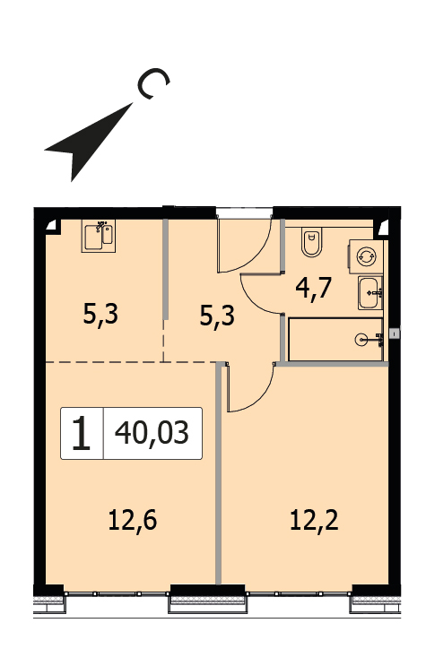 В продаже 1-комнатная квартира без отделки на 27 этаже, Корпус 1.2.