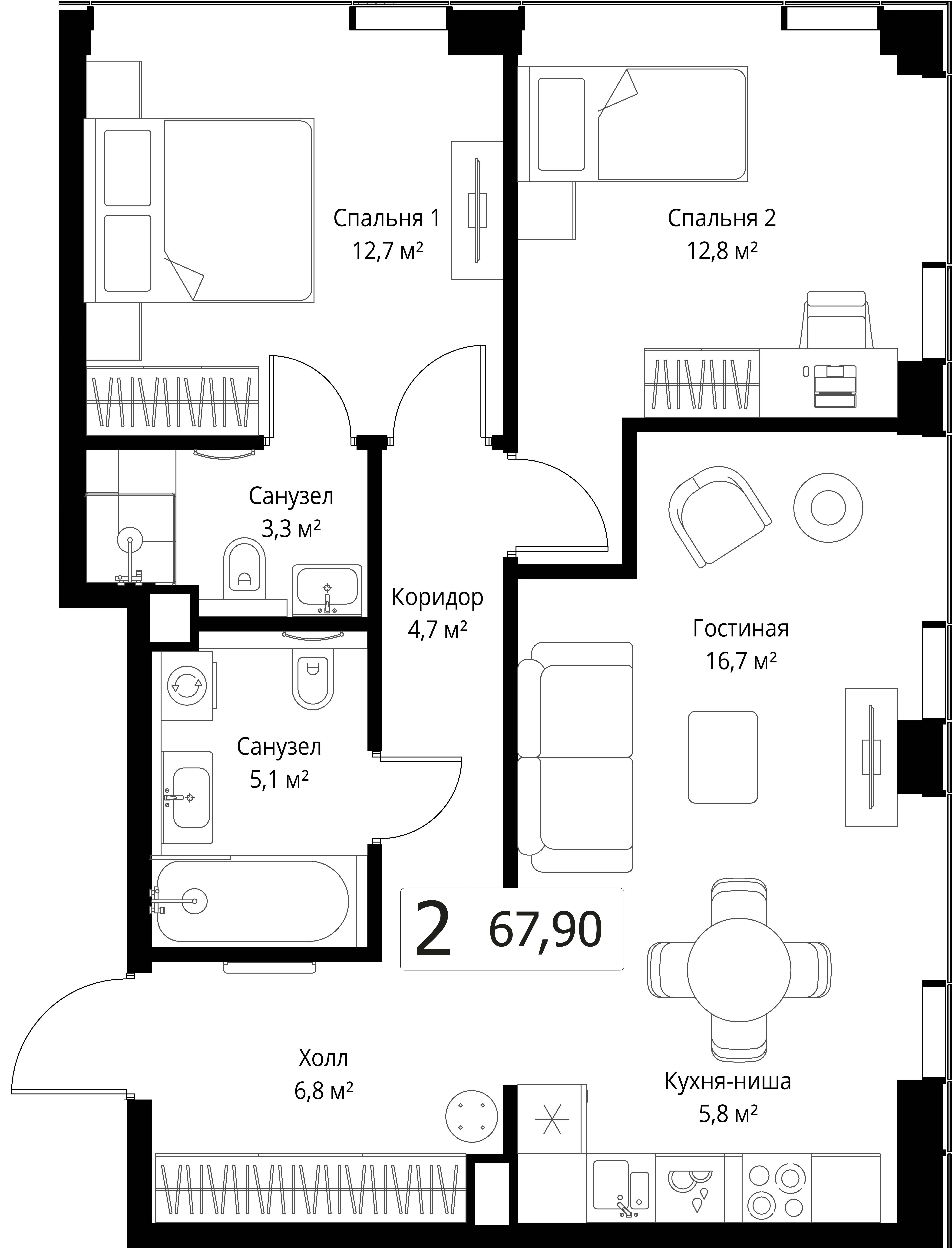 В продаже 2-комнатная квартира без отделки на 25 этаже, Корпус 1.