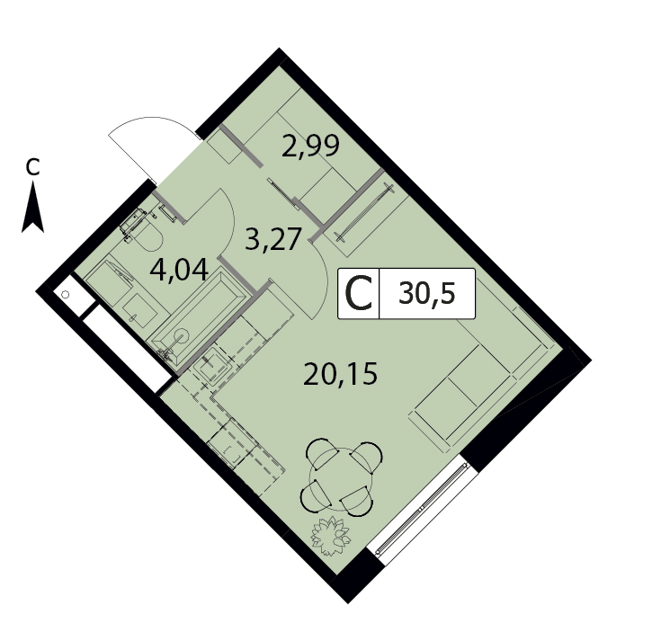 В продаже 1-комнатный апартамент без отделки у метро Выставочная, Международная, Деловой центр на 55 этаже, Корпус 1.