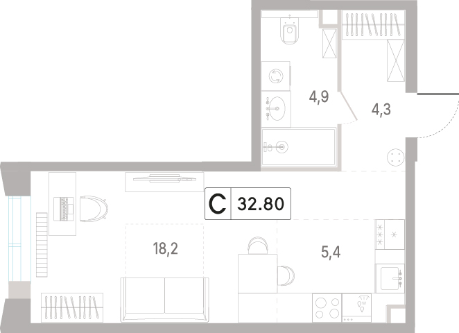 В продаже 2-комнатная квартира без отделки на 8 этаже, Корпус B.