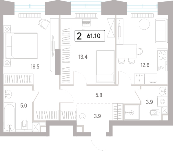В продаже 2-комнатная квартира без отделки у метро Давыдково, Кунцевская на 8 этаже, Корпус 2.