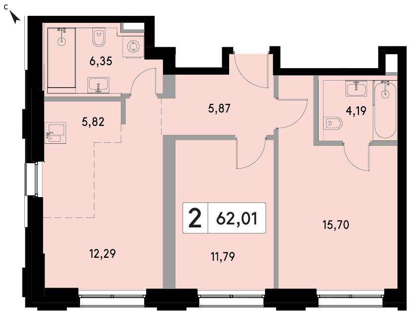 В продаже 2-комнатная квартира без отделки у метро Марьина роща, Марьина роща на 14 этаже, Корпус 1. Официальный партнер Группы «Эталон».