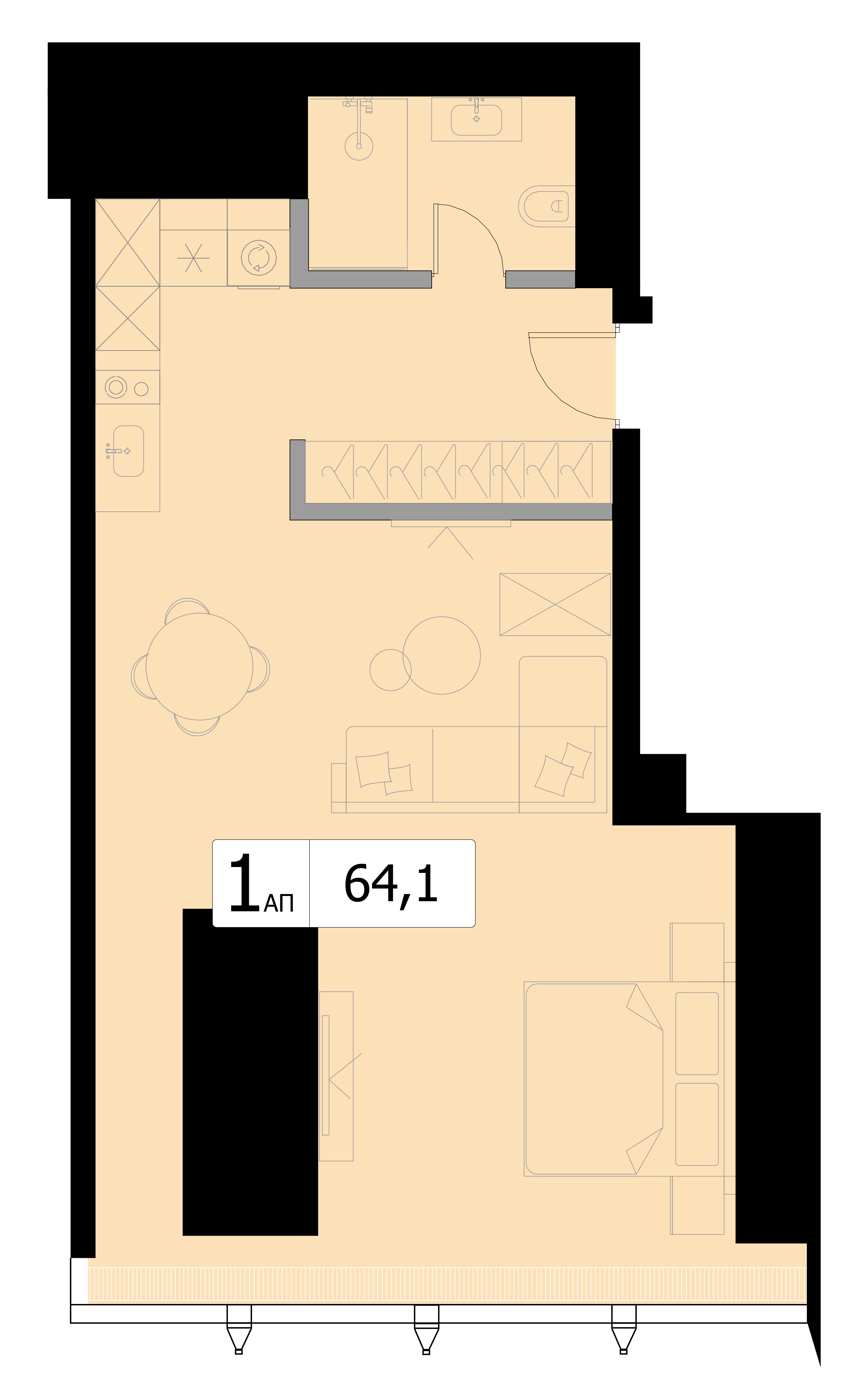 В продаже 1-комнатный апартамент без отделки на 2 этаже, Корпус 1.
