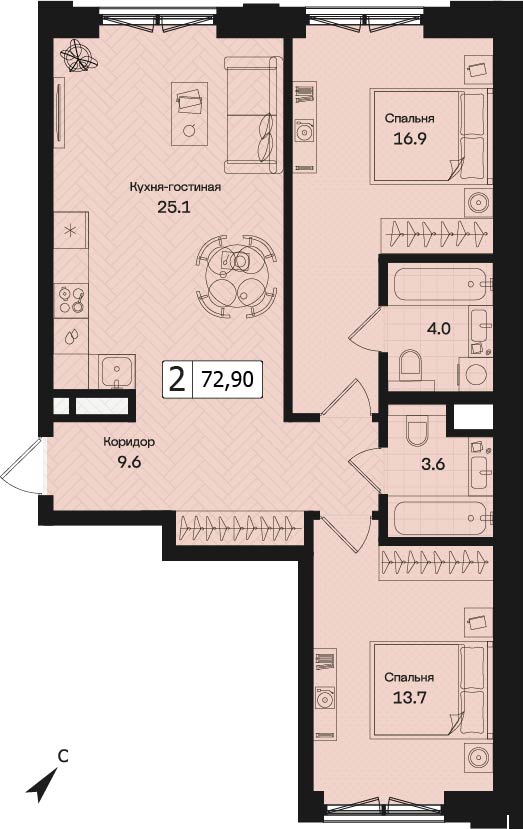 Представляем вашему вниманию 3-комнатная квартира без отделки на 13 этаже, Корпус 1.