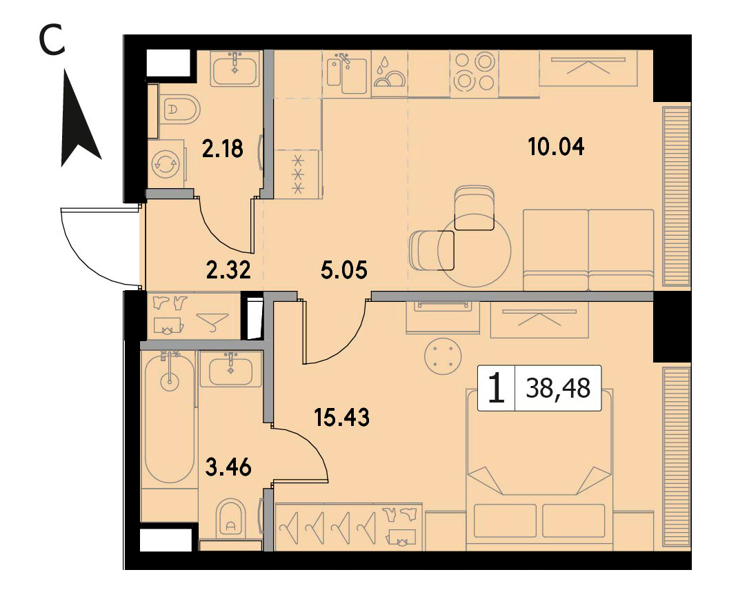 В продаже 1-комнатная квартира без отделки на 8 этаже, Корпус 1.5.