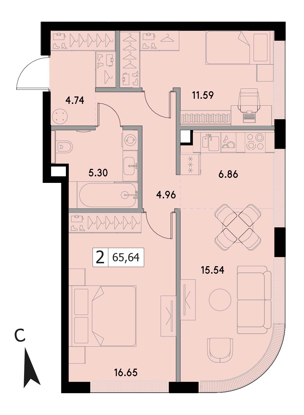 В продаже 2-комнатная квартира без отделки на 8 этаже, Корпус 1.2.