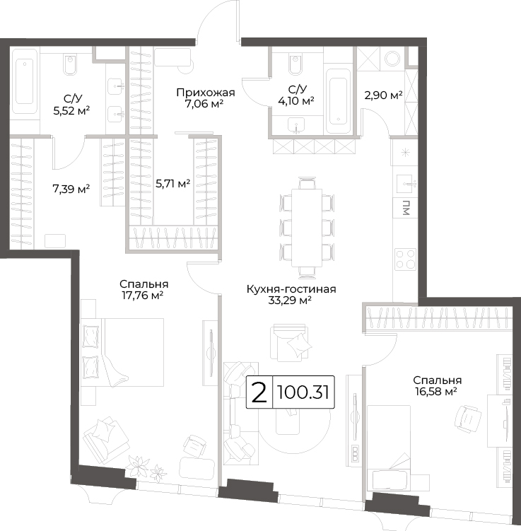 В продаже 2-комнатная квартира без отделки на 10 этаже, Корпус 5. Комплекс расположен рядом с метро «Преображенская площадь», в комфортной шаговой доступности от парка Сокольники и Черкизовского детского парка, что делает его оптимальным и востребованным продуктом премиум-класса по соотношению расположение/цена/качество.