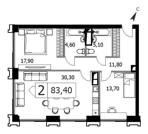 4-комнатная квартира без отделки у метро Улица 1905 года на 9 этаже, Корпус D. Роскошный квартал Life Time дарит время для жизни.