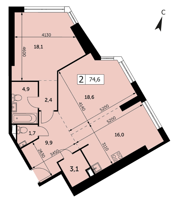 В продаже 2-комнатная квартира без отделки на 4 этаже, Корпус 2.