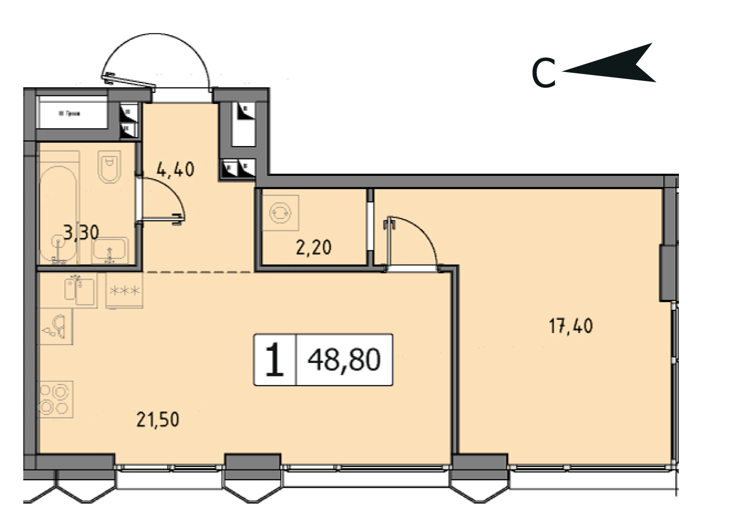 В продаже 1-комнатная квартира без отделки у метро Тушинская на 8 этаже, Корпус 6.