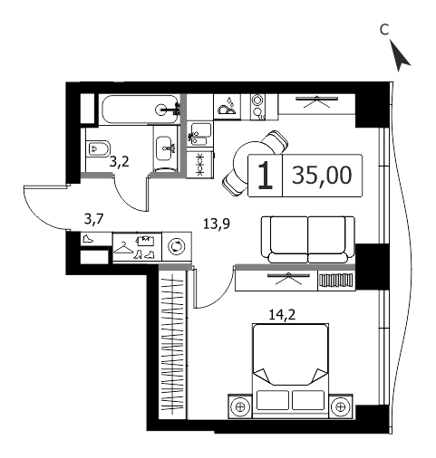 В продаже 1-комнатная квартира без отделки у метро Тушинская на 2 этаже, Корпус 5.