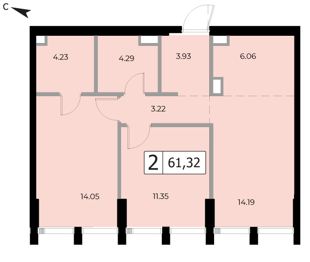 В продаже 1-комнатная квартира без отделки на 19 этаже, Корпус 6.1.