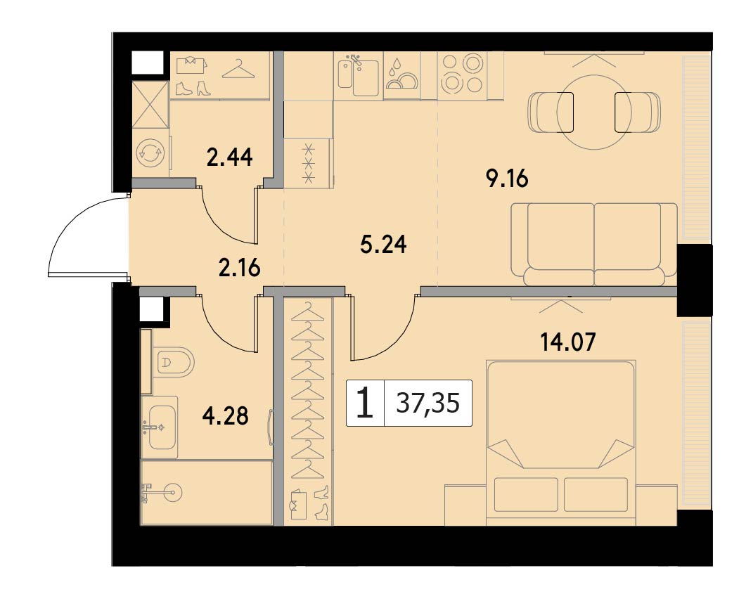 В продаже 2-комнатная квартира без отделки на 9 этаже, Корпус 1.