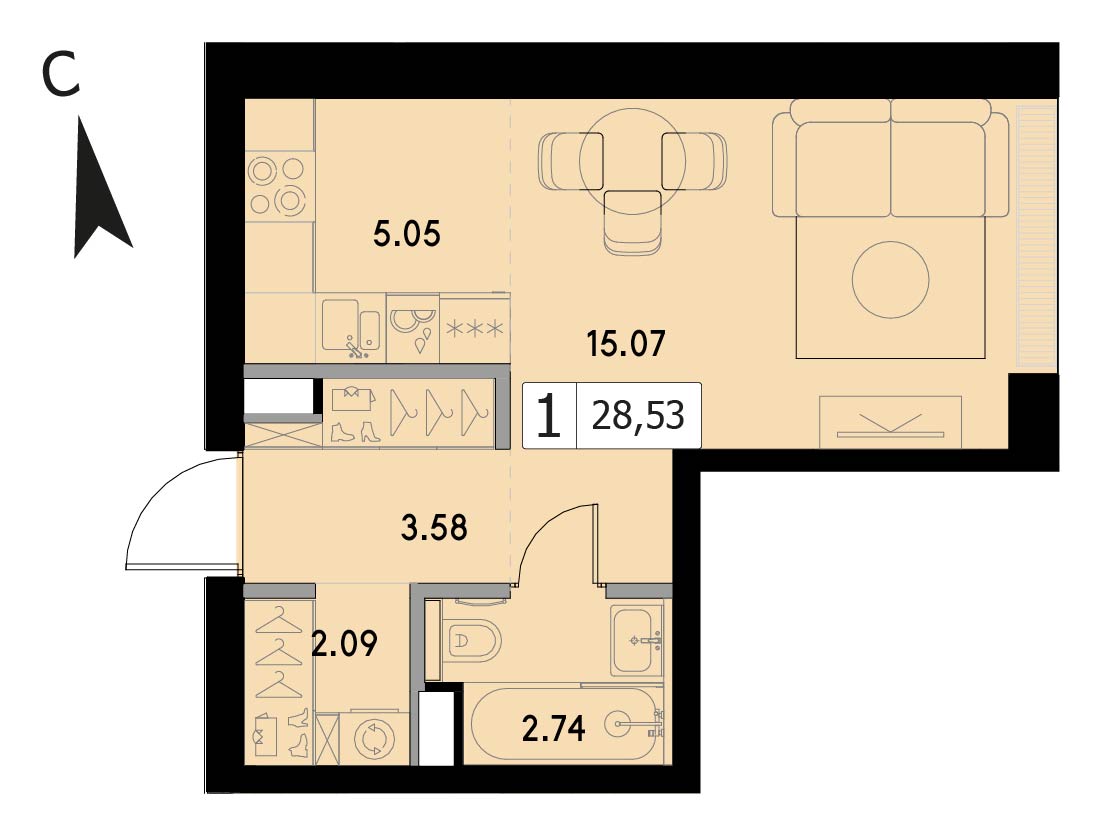 В продаже 2-комнатная квартира без отделки на 11 этаже, Корпус 1.