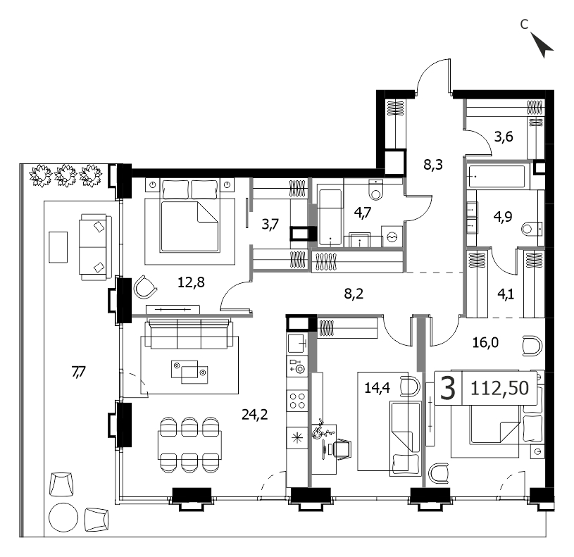 Представляем вашему вниманию 3-комнатная квартира без отделки у метро Тушинская, Спартак на 27 этаже, Корпус 3. ÁLIA - это жилой комплекс бизнес-класса, расположенный в районе Покровское-Стрешнево. Здесь можно наслаждаться чистым воздухом и красивыми парками, в то же время находясь в 7 минутах ходьбы от метро Спартак и 10 минутах от метро Тушинская на берегу Москвы-реки. Транспортная доступность позволяет быстро добраться до центра города или аэропорта «Шереметьево».