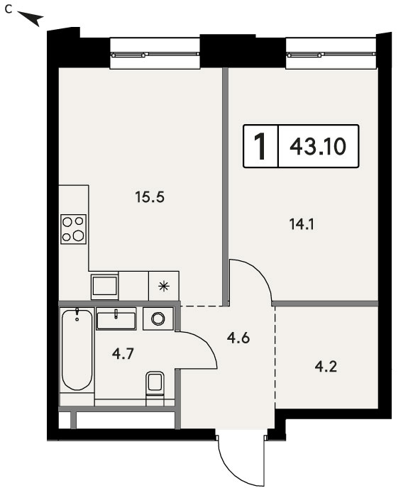 В продаже 2-комнатная квартира без отделки на 25 этаже, Корпус 1.