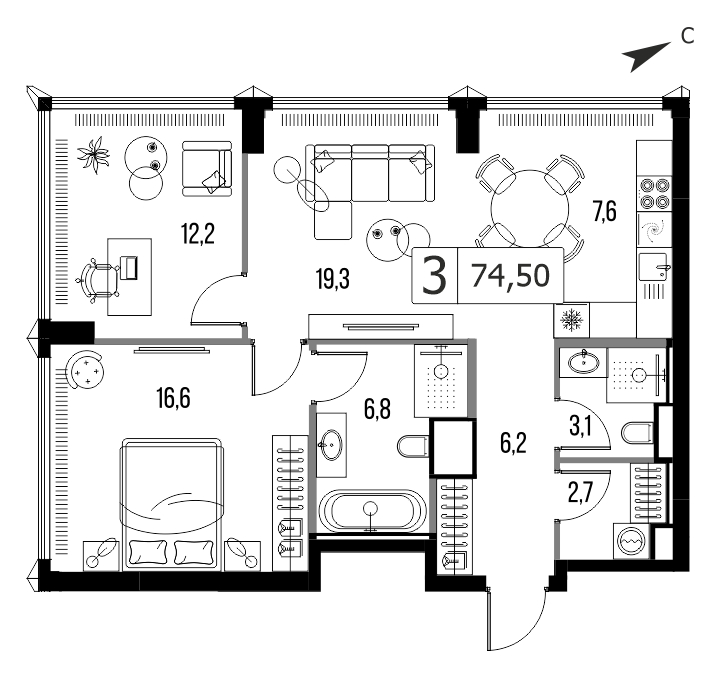 Представляем вашему вниманию 3-комнатная квартира без отделки у метро Сокольники, Рижская на 29 этаже, Корпус Б.