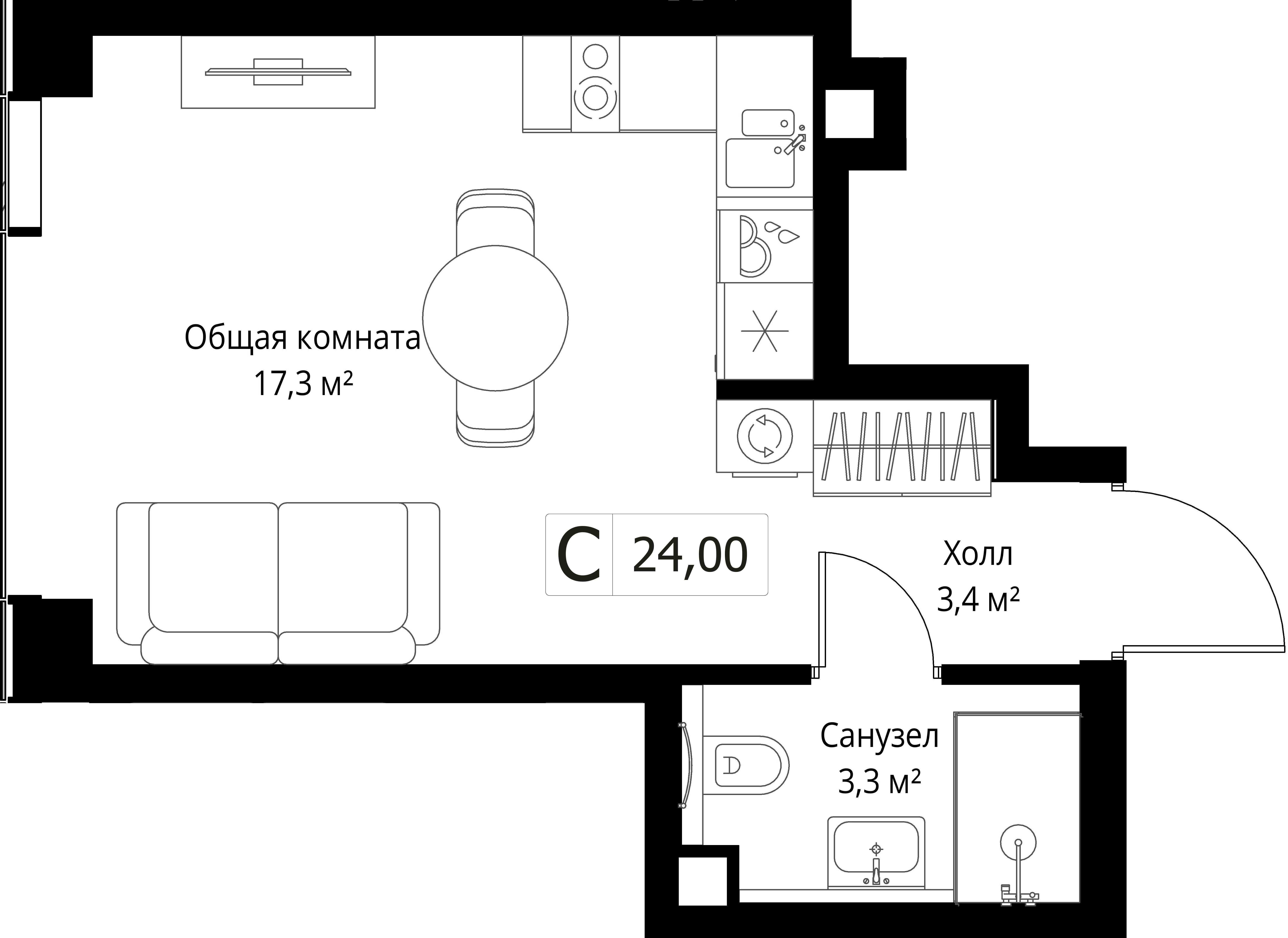 В продаже 1-комнатная квартира без отделки на 27 этаже, Корпус H.