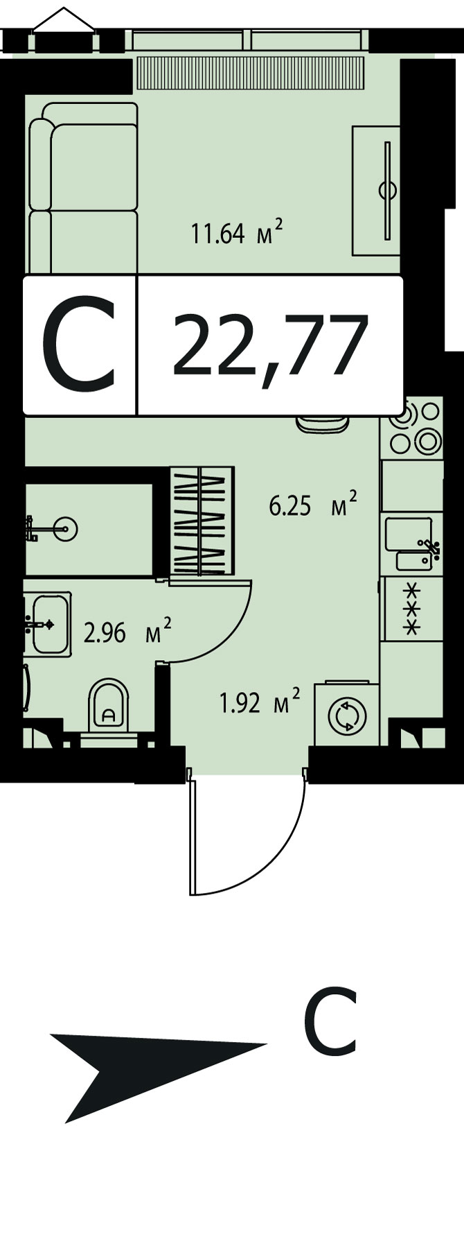 Продается квартира-студия без отделки на 17 этаже, Корпус 1.