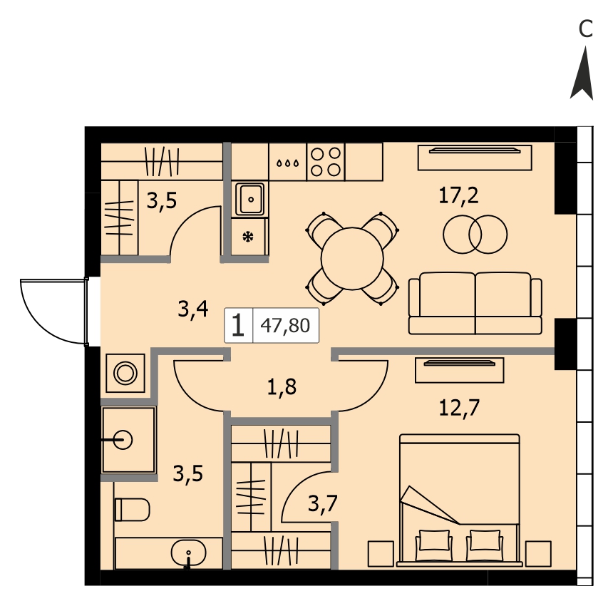 В продаже 2-комнатная квартира без отделки на 33 этаже, К1.