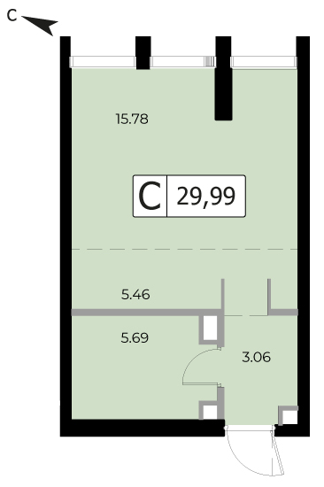 Продается квартира-студия без отделки на 25 этаже, Корпус 1.