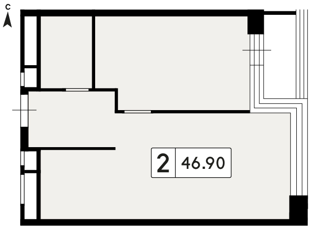 В продаже 1-комнатная квартира без отделки на 12 этаже, Корпус 1.