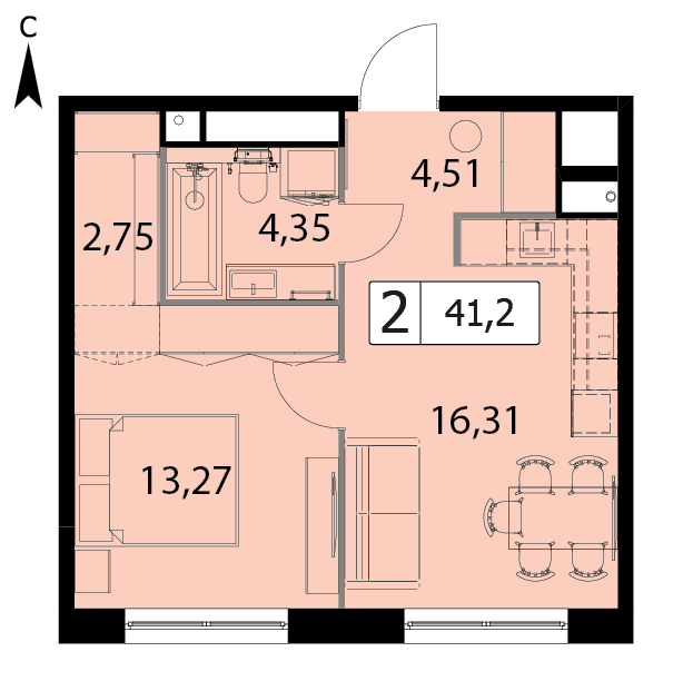 В продаже 1-комнатная квартира без отделки на 11 этаже, Корпус 1.2.