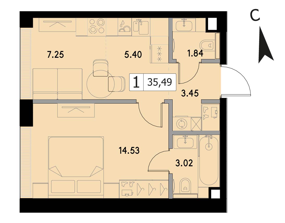 Продается квартира-студия без отделки на 23 этаже, Корпус 1.4.