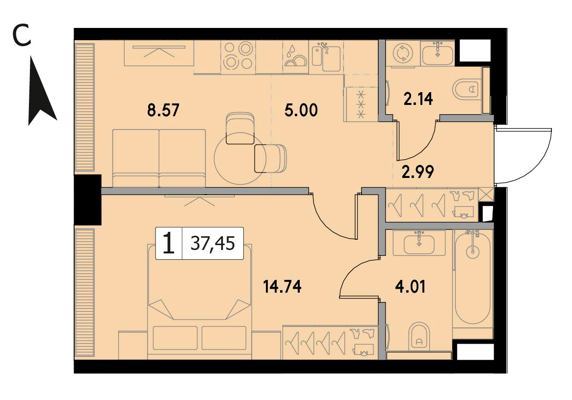 В продаже 2-комнатная квартира без отделки на 17 этаже, Корпус 1.