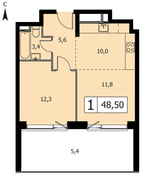 В продаже 1-комнатная квартира без отделки на 13 этаже, Корпус 1.