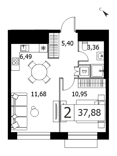 В продаже 2-комнатная квартира без отделки на 22 этаже, Среда на Кутузовском.