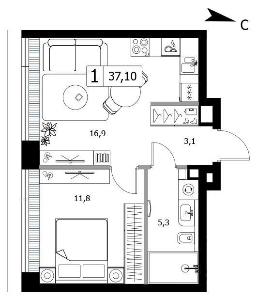 В продаже 1-комнатная квартира без отделки у метро Тушинская на 5 этаже, Корпус 5.