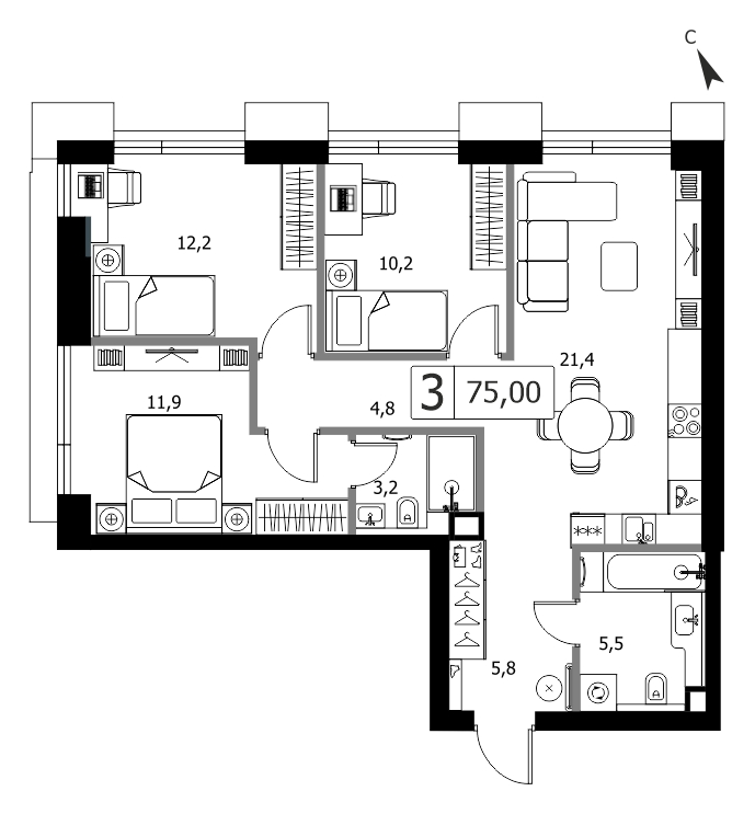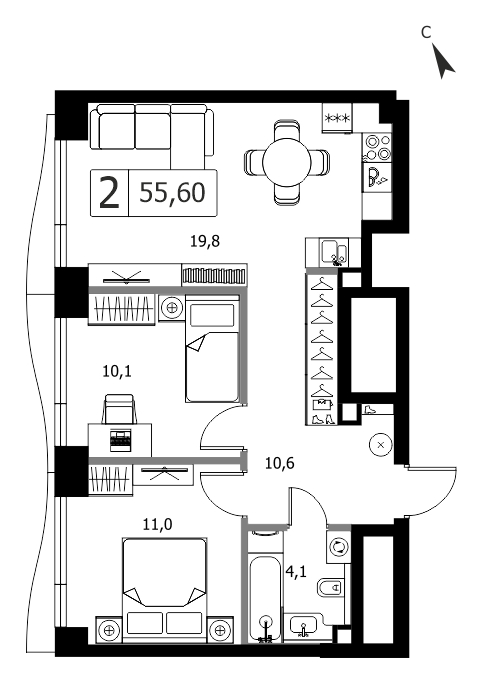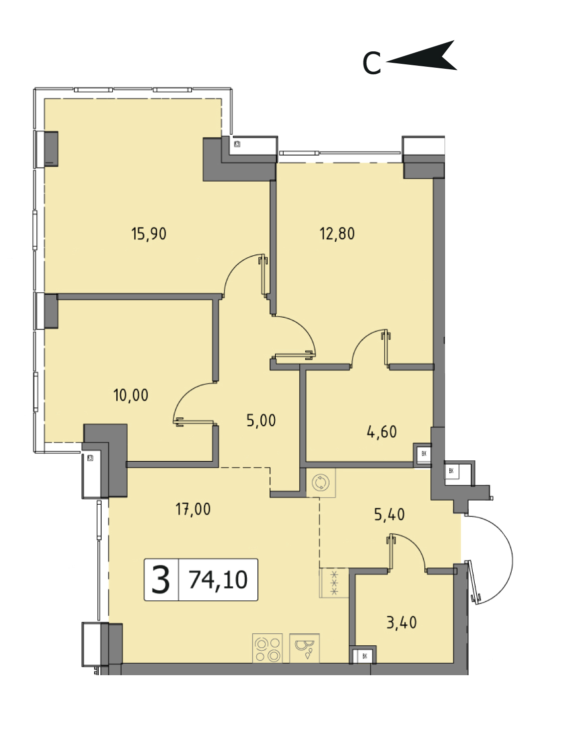 Представляем вашему вниманию 3-комнатная квартира без отделки у метро Тушинская на 19 этаже, Корпус 3.