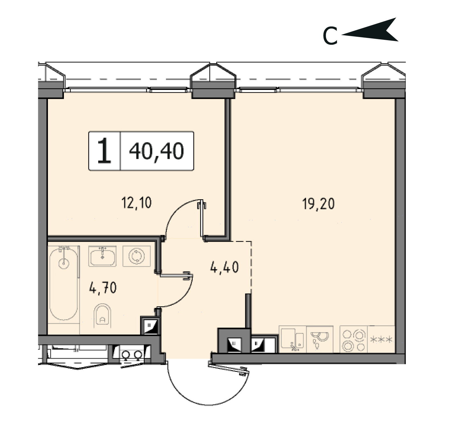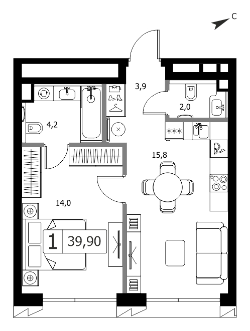 В продаже 1-комнатная квартира без отделки у метро Тушинская на 4 этаже, Корпус 9.