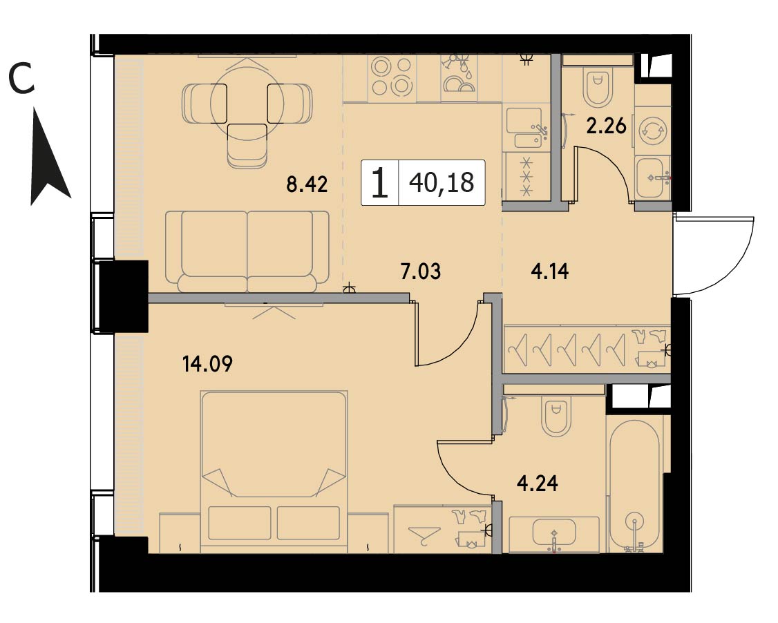 В продаже 1-комнатная квартира без отделки на 20 этаже, Корпус 1.5.