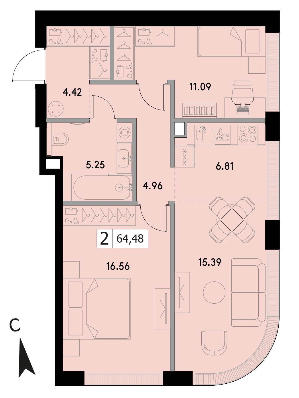 В продаже 2-комнатная квартира без отделки у метро Войковская, Балтийская на 11 этаже, Корпус 4.