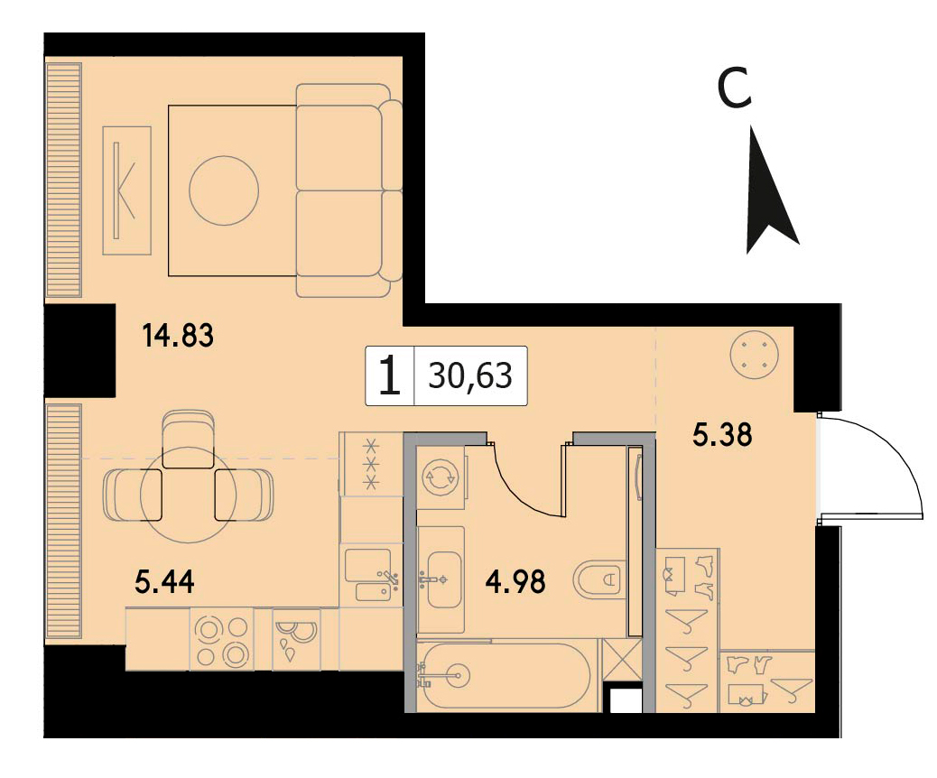 4-комнатная квартира без отделки на 39 этаже, Корпус А.