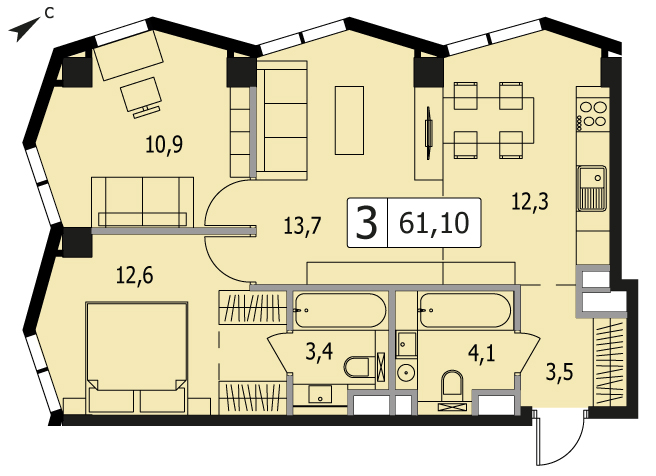 Представляем вашему вниманию 3-комнатный апартамент без отделки на 23 этаже, Корпус 1. Многофункциональный комплекс бизнес-класса Nametkin Tower находится в благоприятном районе по адресу: ул. Наметкина, вл. 10. Многофункциональный комплекс бизнес-класса имеет П-образную форму дома, высота достигает 29 этажей.
