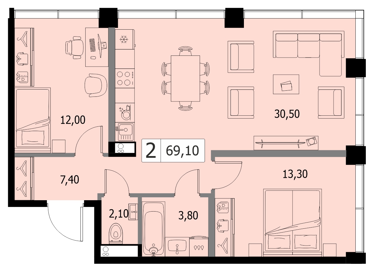 В продаже 2-комнатная квартира без отделки у метро Войковская, Балтийская на 24 этаже, Корпус 4.