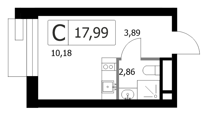 Продается квартира-студия без отделки на 13 этаже, Среда на Лобачевского.