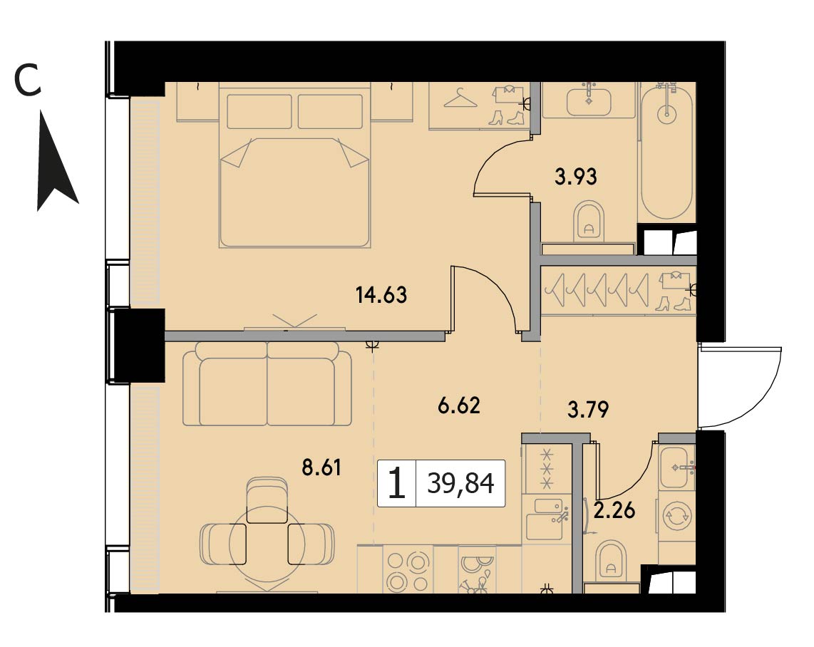В продаже 1-комнатная квартира без отделки на 17 этаже, Корпус 1.5.